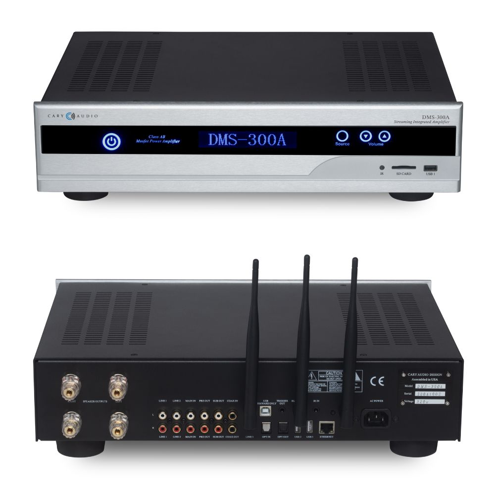 The Cary Audio DMS-300A is a premium streaming integrated amplifier that unites a DAC, streamer, and power amplifier in one sleek chassis. Engineered for discerning audiophiles, it delivers studio-grade sound quality with effortless connectivity—just add your favourite speakers and immerse yourself in high-fidelity music. Featuring seamless integration with TIDAL Connect, Qobuz Connect, Spotify Connect, Roon, DLNA, AirPlay, and the Cary Audio Streamer App, the DMS-300A offers unlimited ways to enjoy your music.