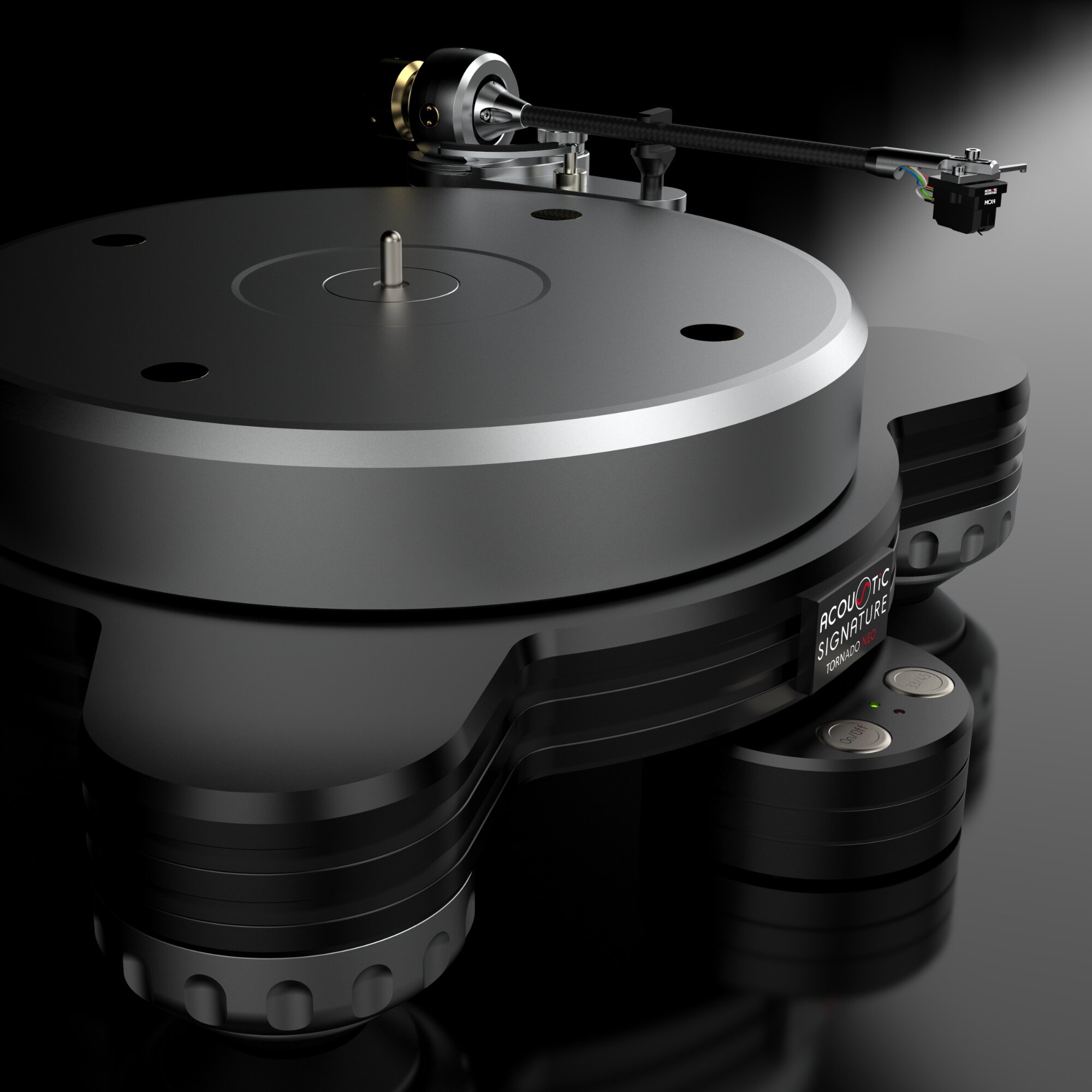 Meie NEO seeria planeerimisfaasis soovisime esitleda ülipaindlikku, suure massiga (high-mass) plaadimängijat, mis vallandaks audiofiilsed jõud kaugele väljapoole selle hinnaklassi. Järelikult loodigi suurejooneline Acoustic Signature Tornado NEO. See pakub lummavat muusikalist esitust, mis vallutab tormina hõlpsasti ka kõige kogenumad analoogiarmastajad.